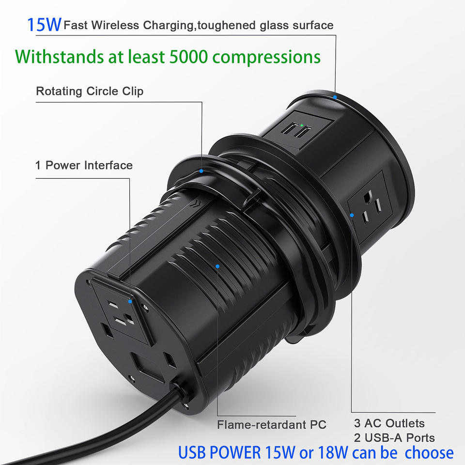 Configuration:5 AC power+15W wireless charger