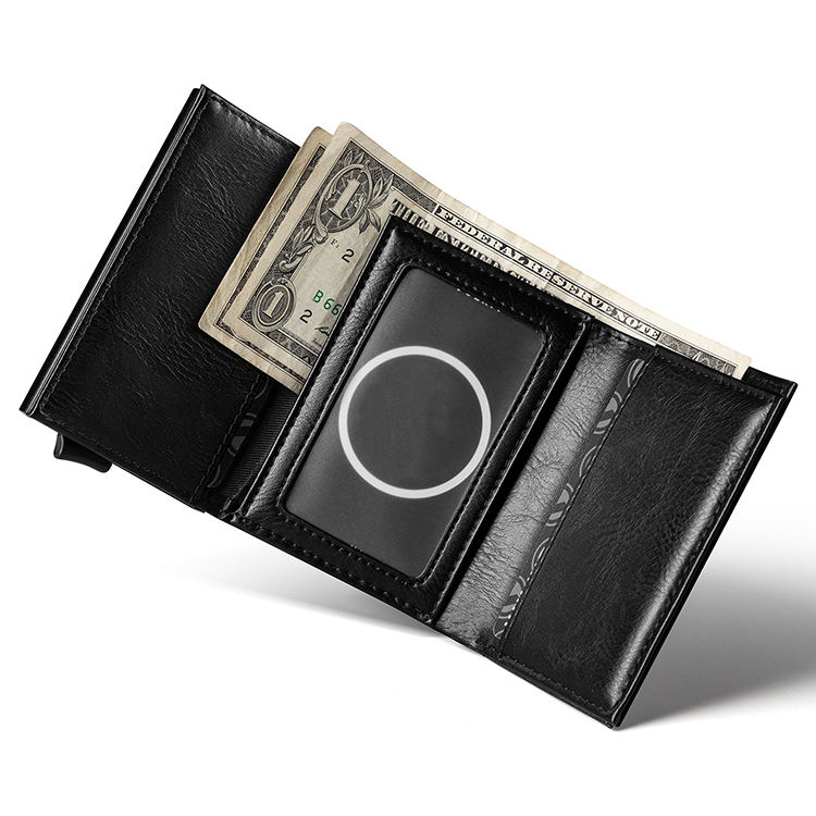 Smart RFID sottile in metallo porta carte di credito in vera pelle portafoglio Pop-up con chiusura a cerniera a breve lunghezza fodera in poliestere per gli uomini