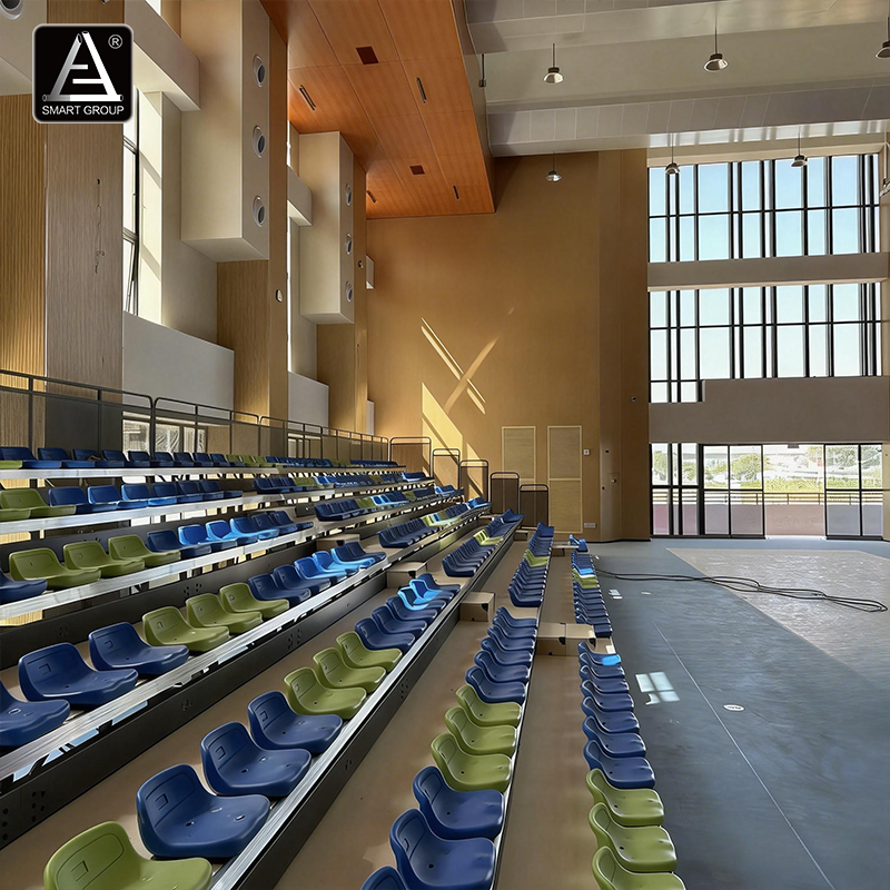 Sedute Retrattili Intelligenti per Palestre, Sedili Mobili per Stadi, Tribune Telescopiche, Sedie per Gradinate Retrattili