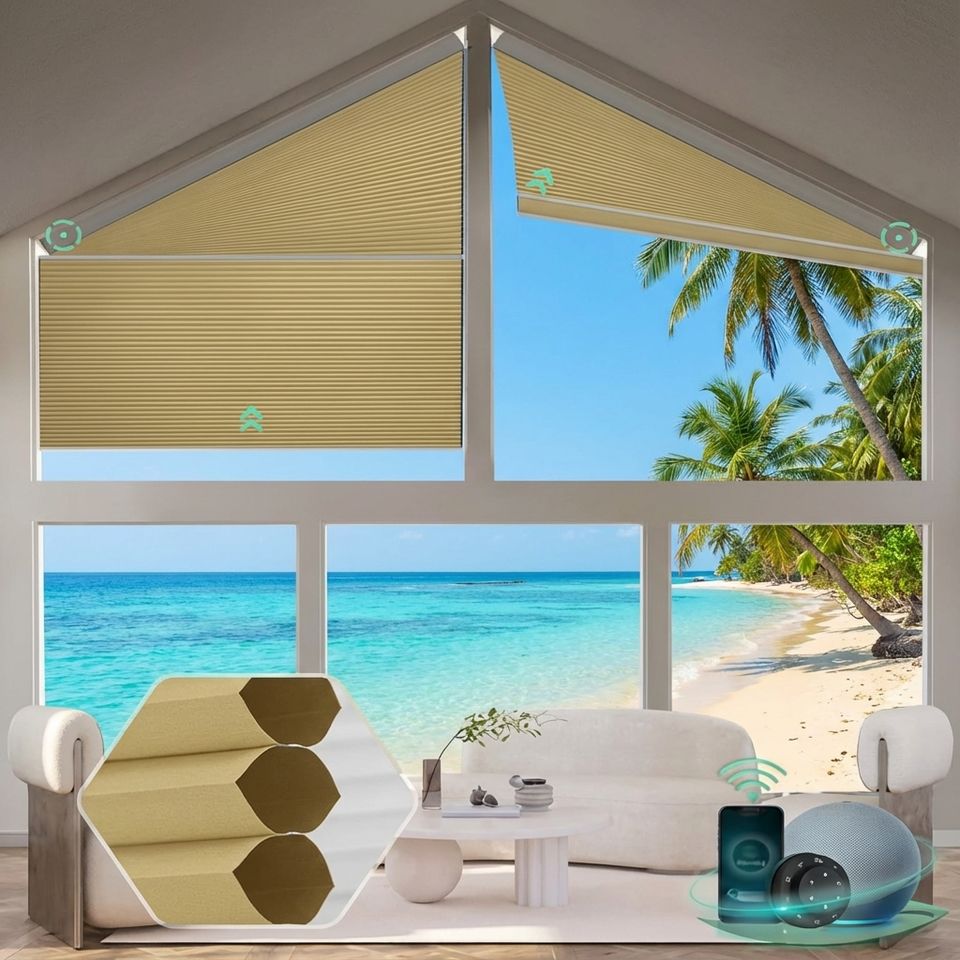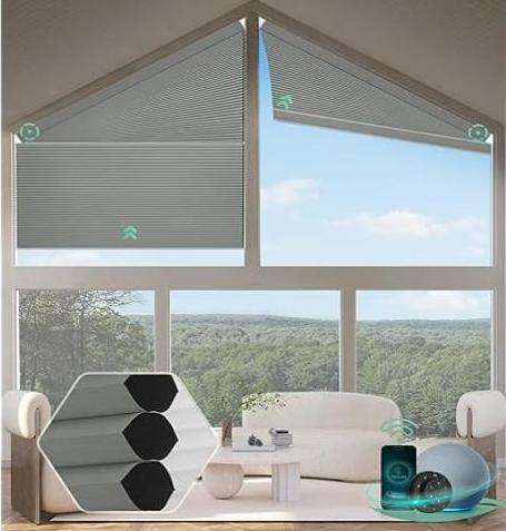 Tende Cellulari a Triangoli Intelligenti, Tende per Finestre Irregolari, Tende a Nido d'Ape Motorizzate per Casa e Mansarda