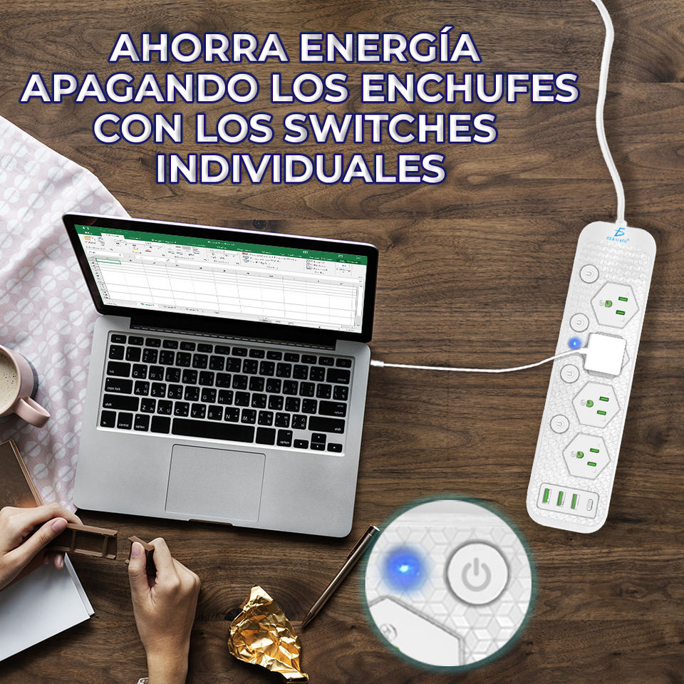 Multipresa Intelligente Universale con 4 Prese, 3 USB e 1 Porta Type-C per Ricarica Rapida e Sicura, Cavo di Prolunga da 5m