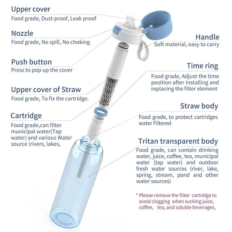 Bottiglia d'acqua intelligente con filtro alcalino in paglia per uso alimentare plastica con filtro