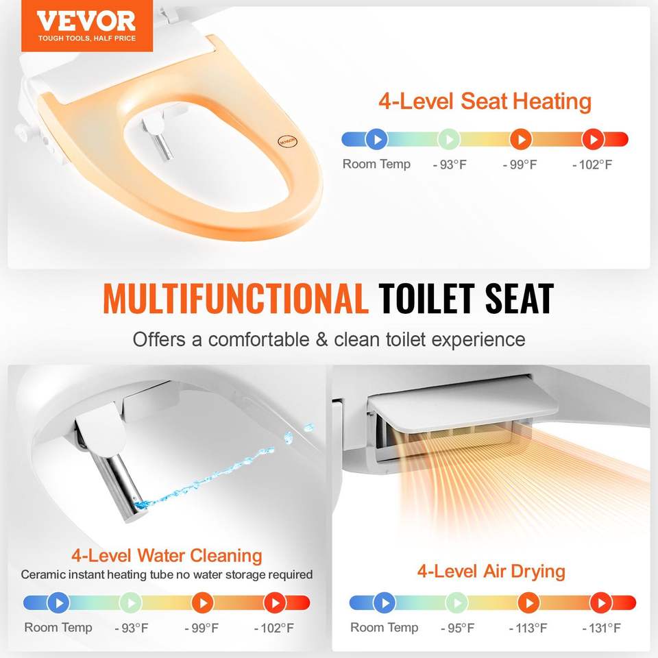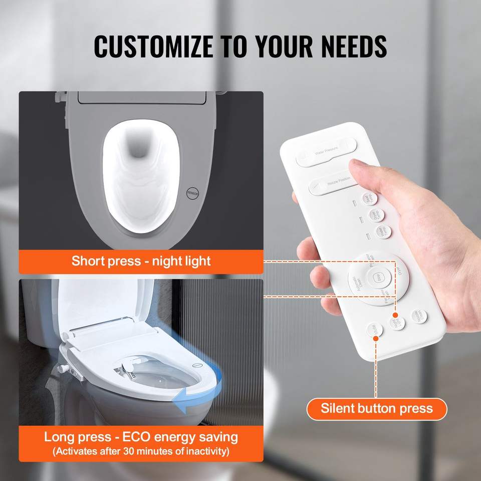 Smart White Toilet Seat with Remote Control Elongated Bidet Electric Night Light Self-Cleaning Air Dryer Easy Installation