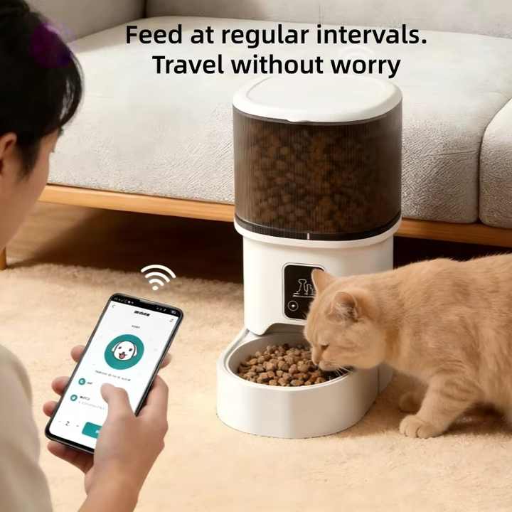 Distributore Automatico di Cibo per Gatti Smart Wifi con Telecamera, Controllo Remoto Portatile, Alimentatore Intelligente con Video per Cani e Gatti