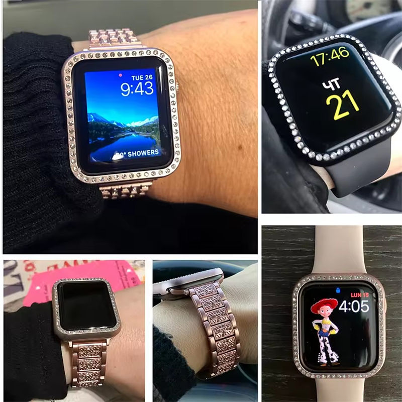 Custodia Protettiva in Metallo con Cristalli per Smartwatch Apple Watch Serie 10 9 8 7 6 5