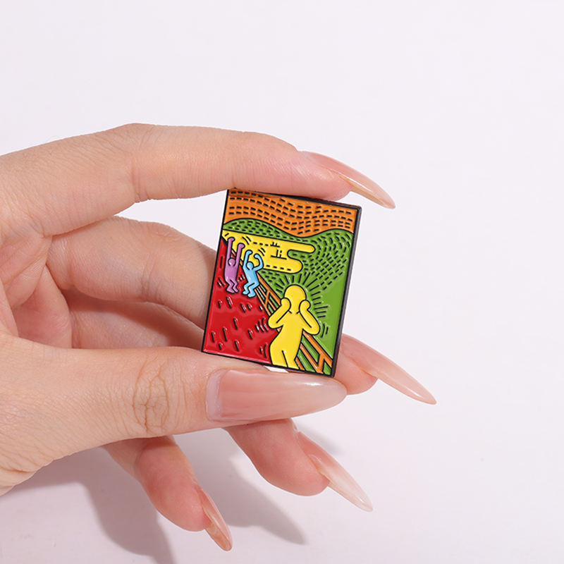 Sming Pins Creative Oil Painting Brooch Car Black Cat Disc Avocado Whale Boat Duck Mouse Crow Girl Book Flower Skull