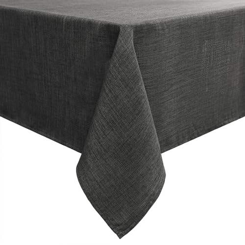 Tovaglia Rettangolare in Lino Intrecciato Smiry 140 X 240 cm, Resistente all'Acqua, Lavabile, Copritavolo per Cucina e Decorazioni per Feste, Grigio Scuro