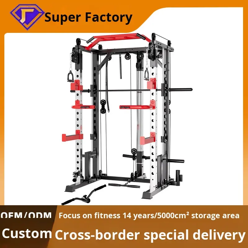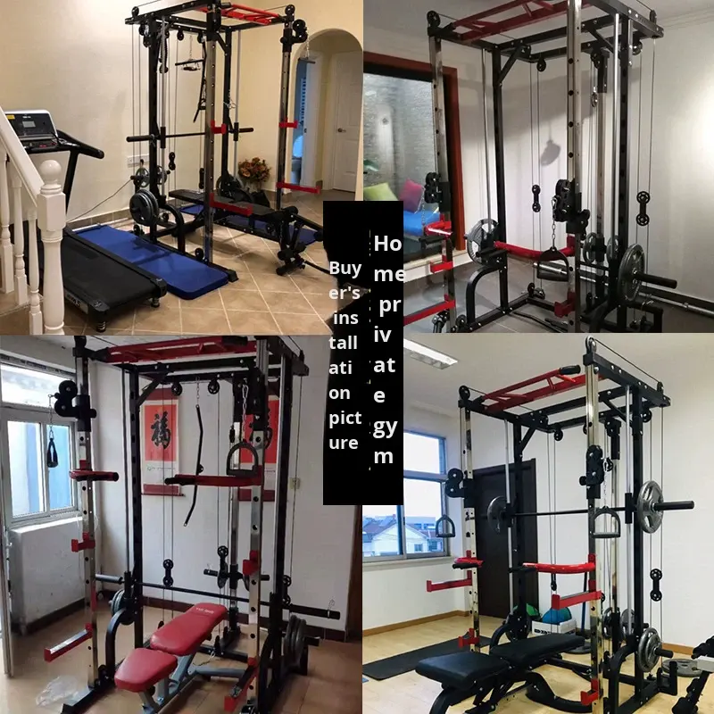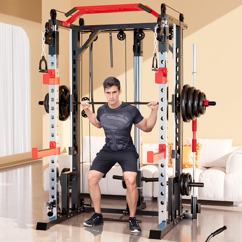 Smith Machine per Uso Domestico, Stazione Multifunzione in Metallo con Rack per Squat, Panca e Bilanciere, per Allenamento della Forza in Palestra