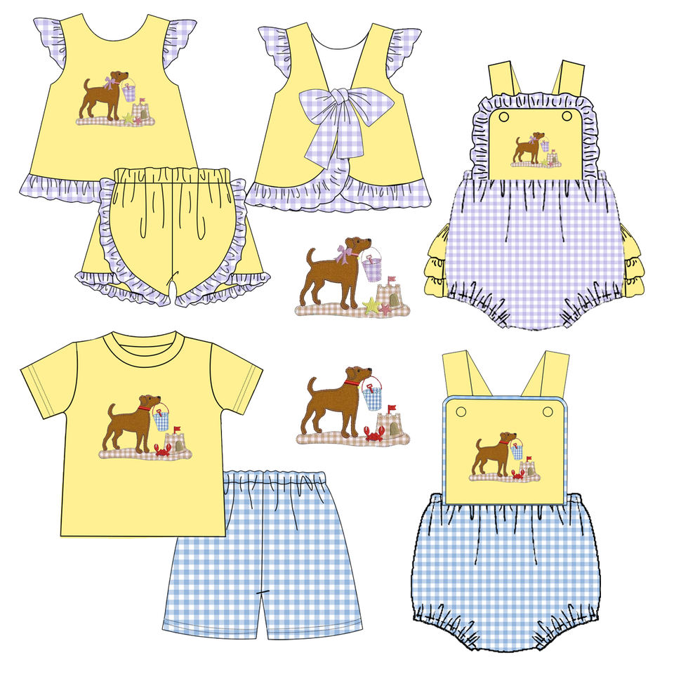 Smocked Children Clothing Summer Kids Clothes Kids Sibling Clothing Set Crab Beach Embroidery Baby Girl Clothing with Smock