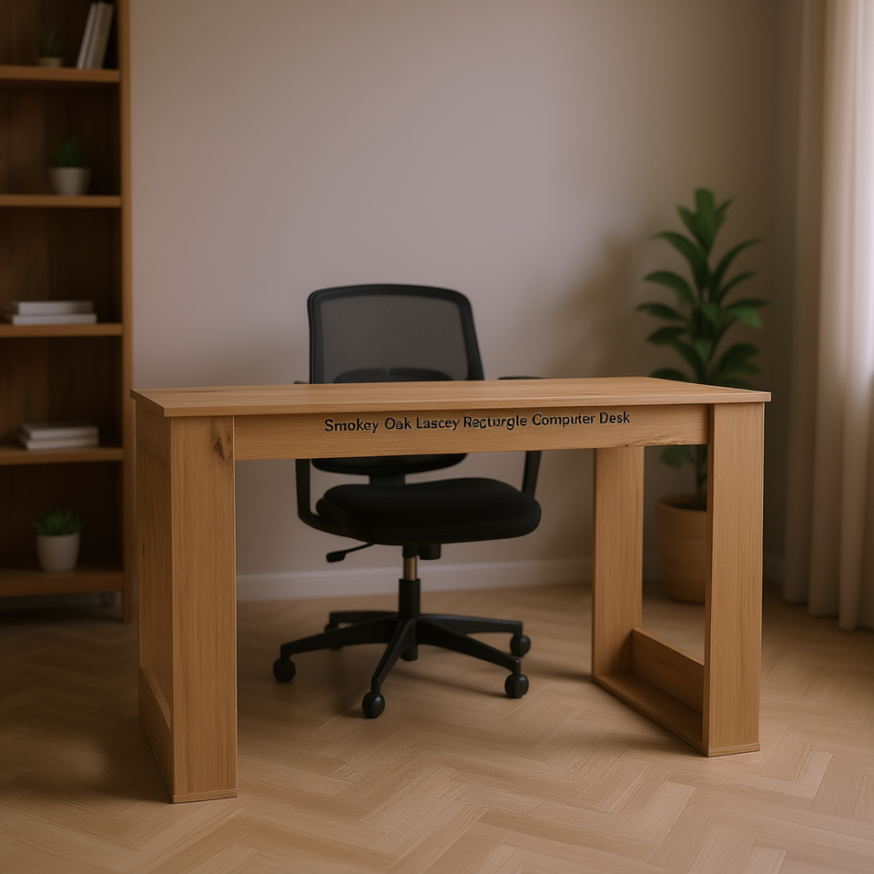 Scrivania rettangolare per computer Smokey Oak Lacey con superficie in legno, mobili per ufficio domestico