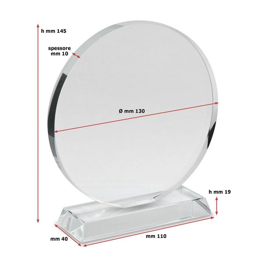 Trofeo in Vetro Liscio e Rotondo con Stampa UV, Diametro 130mm, Base 19mm, per Premi e Fiere