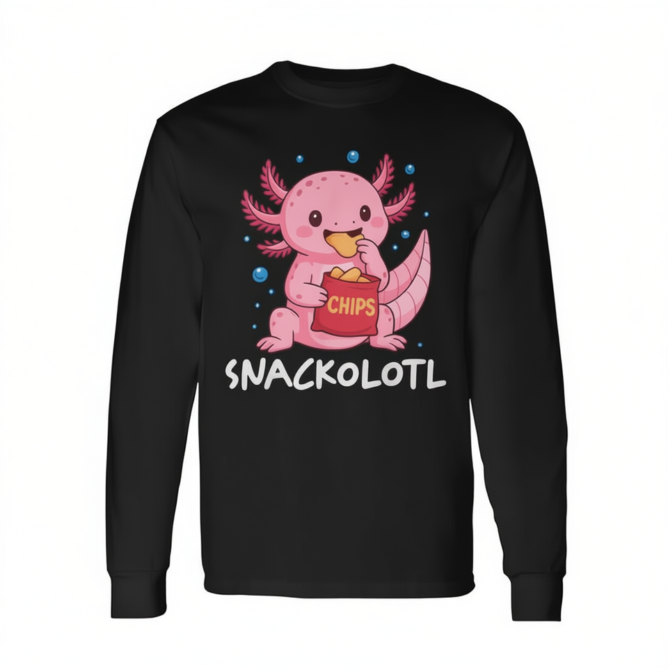Maglietta a maniche lunghe Snackolotl Axolotl Snack, girocollo unisex, stampa digitale, per adulti, promozionale