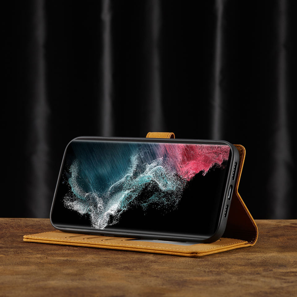 Custodia in pelle per telefono a scatto per samsung s21 s22 plus/custodia posteriore per telefono di tipo business con protezione a scorrimento per scheda ultar