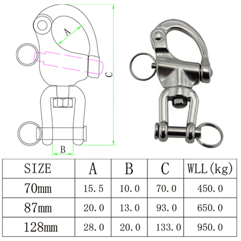 Snap Shackle With Swivel Marine Grade 316 Stainless Steel Rigging Carabiner