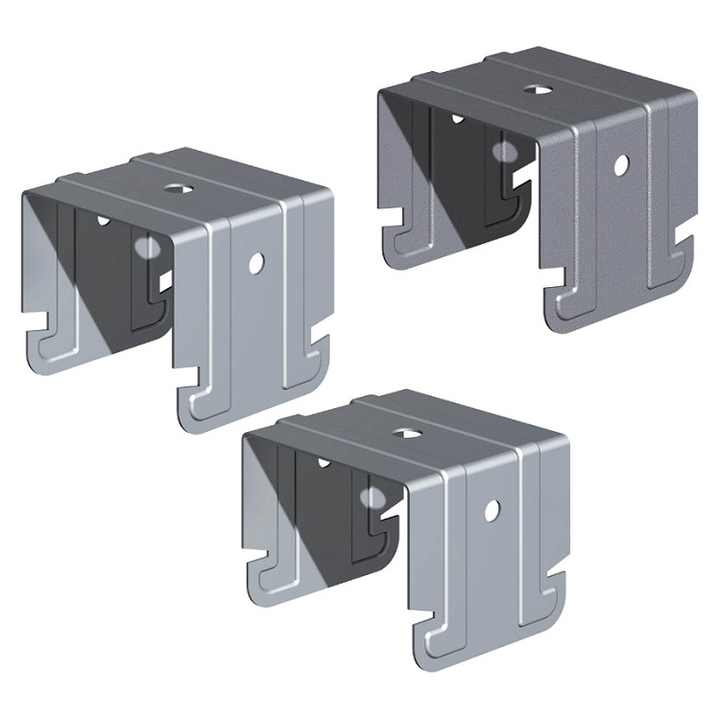 Gancio ortogonale a scatto per montanti a C da 27/48/27 con bordo piatto, confezione da 10