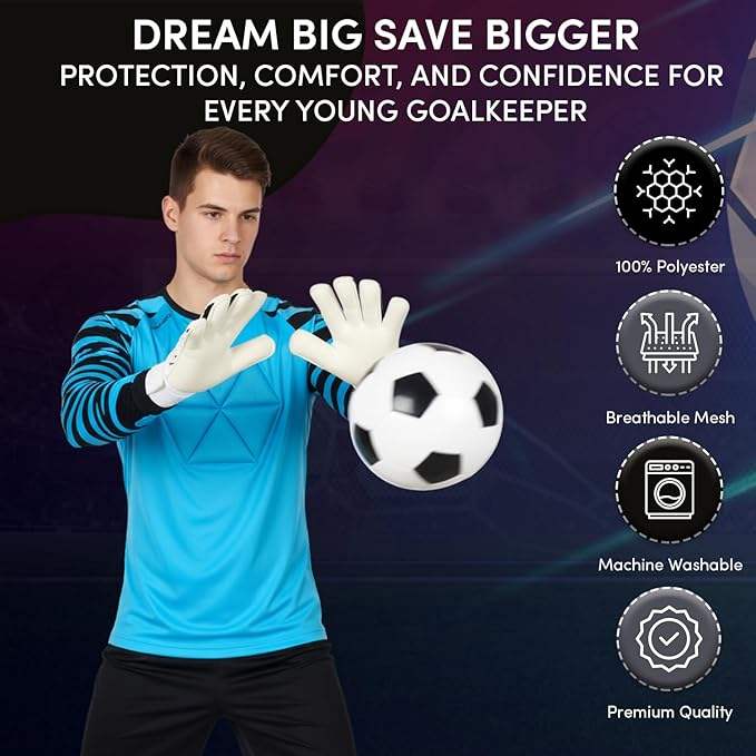 Maglia da Portiere da Calcio per Giovani e Adulti - Maglia da Portiere a Maniche Lunghe con Imbottitura sul Petto e sui Gomiti - Maglia da Portiere Uomo e Donna