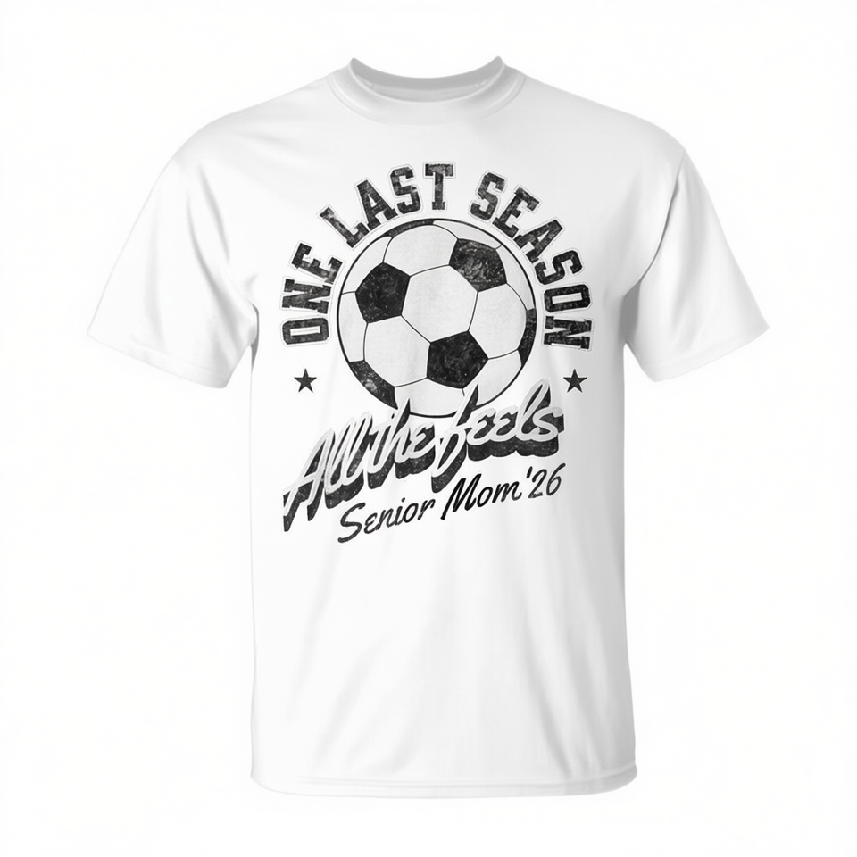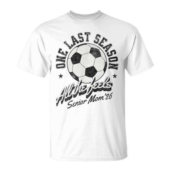T-Shirt Effetto Invecchiato per Mamma di Calciatrice Senior 2026 - Ultima Stagione, Tutte le Emozioni