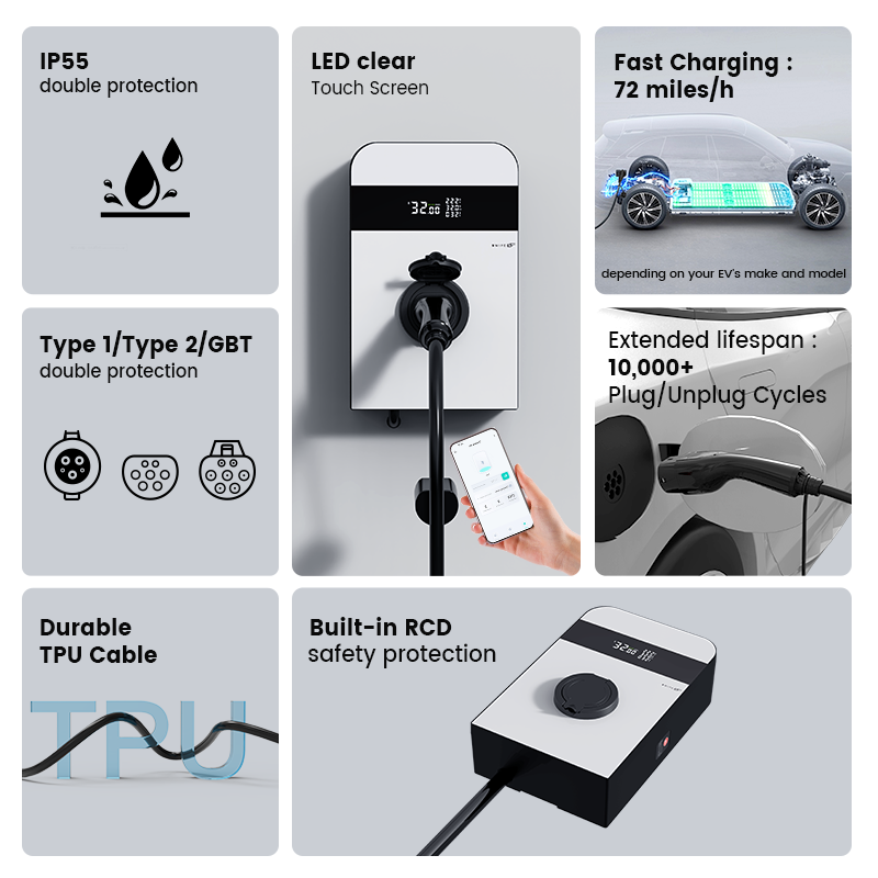 Socketed AC EV Charger Wallbox Type 2 for Europe Supporting Tesla NACS and GB/T Markets
