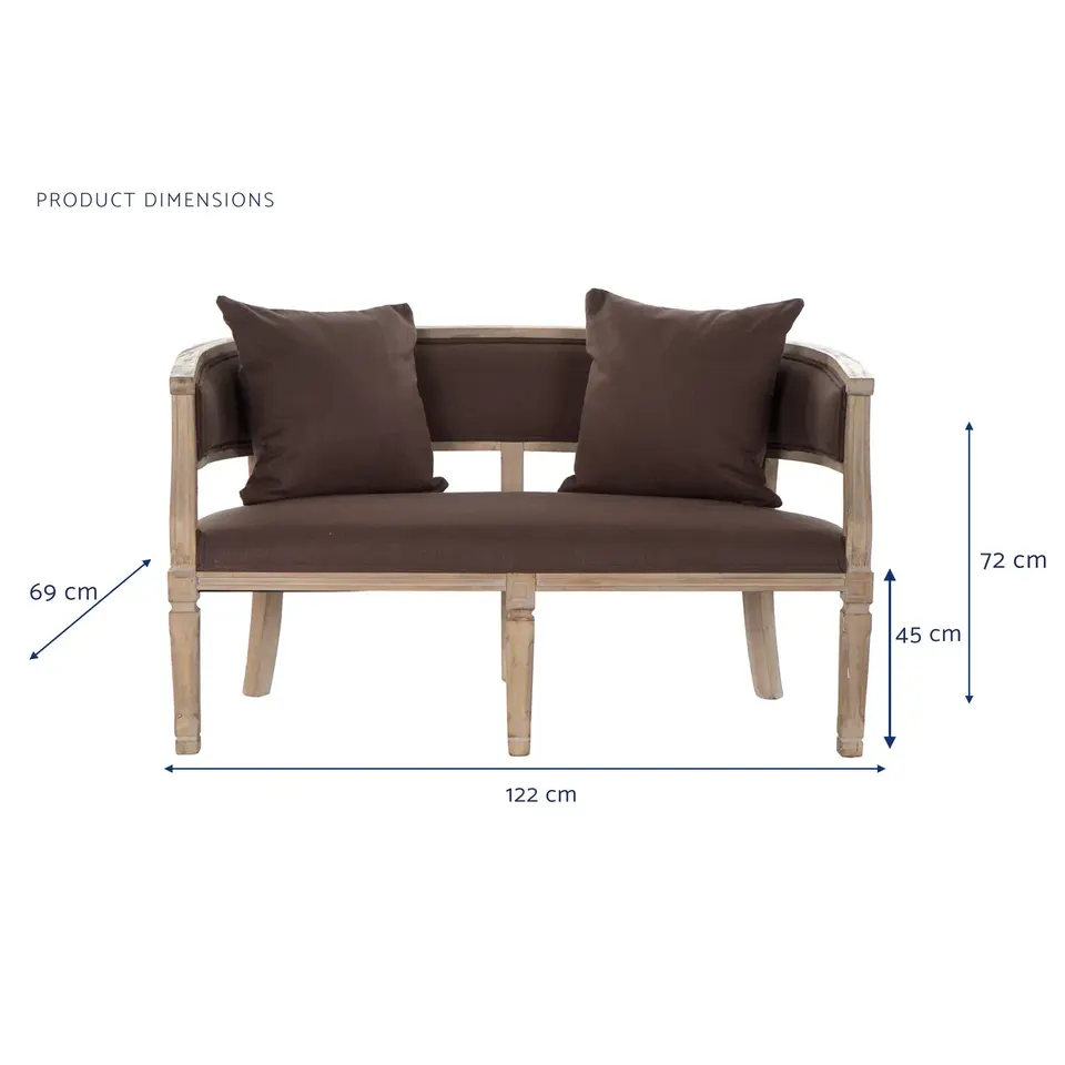 Sofa Lino Rubberwood 122x69x72cm 2 Seats Brown