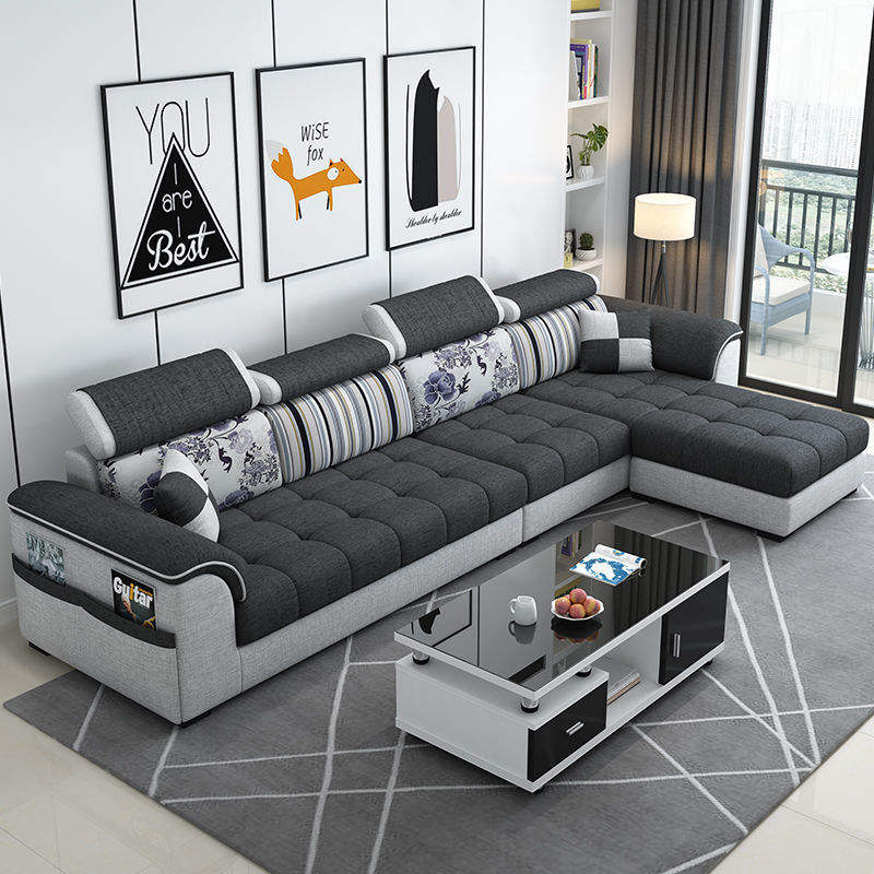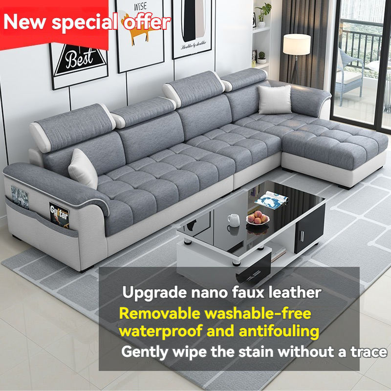 Divano per piccolo appartamento, semplice e moderno, salotto, divano in tessuto a tre posti angolare rimovibile e lavabile