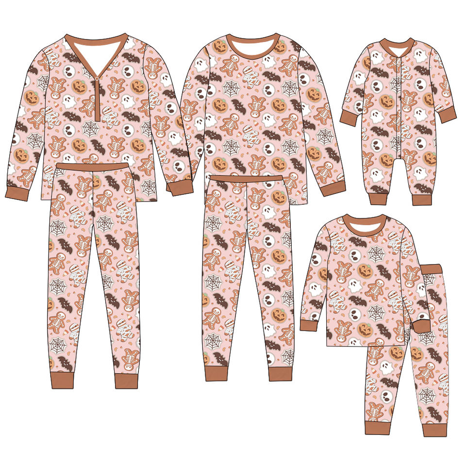 Pigiama abbinato per famiglia in 5% di bambù in morbido 95%: stampa a tema Halloween, Set a maniche lunghe per abbigliamento quotidiano e Halloween