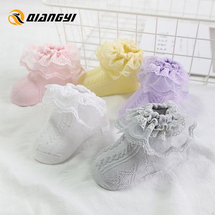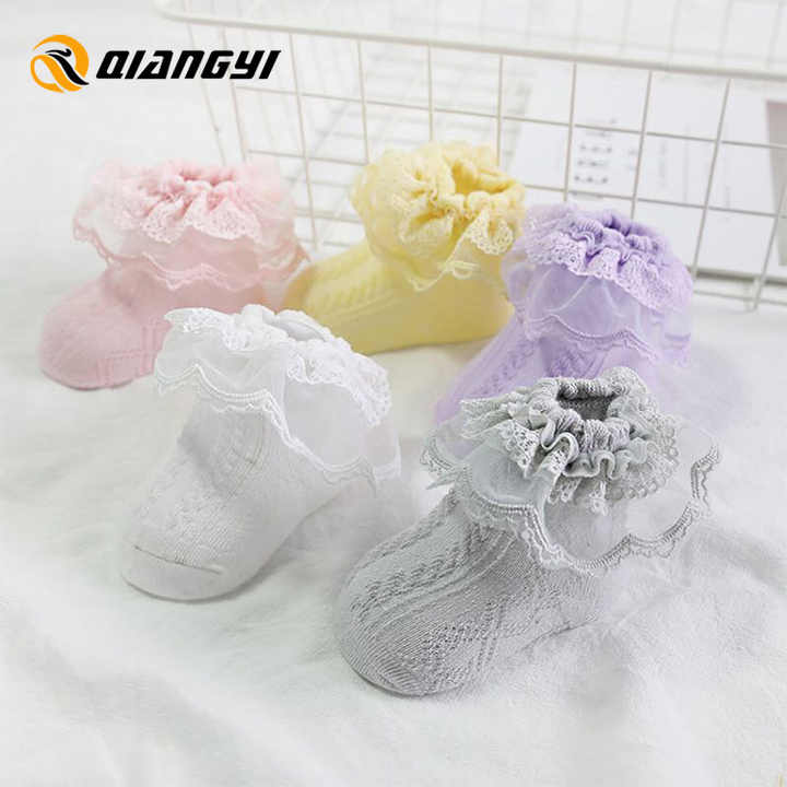 Calzini in cotone organico antiscivolo antiscivolo morbido e traspirante, calze per bambini in pizzo per bambine