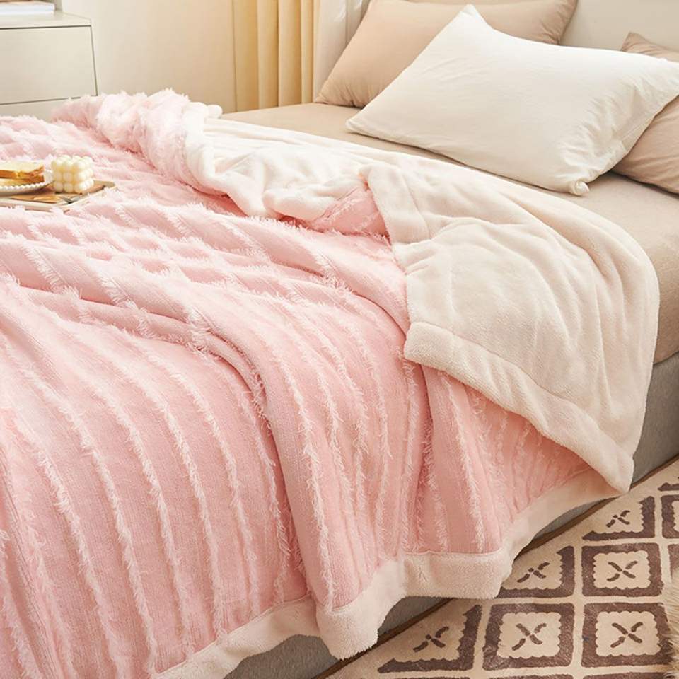 Soft Cozy for Pink Coral Fleece Throw Blanket Warm Comforter for Sofa Bed N Decorative for Living Room Bedroom N