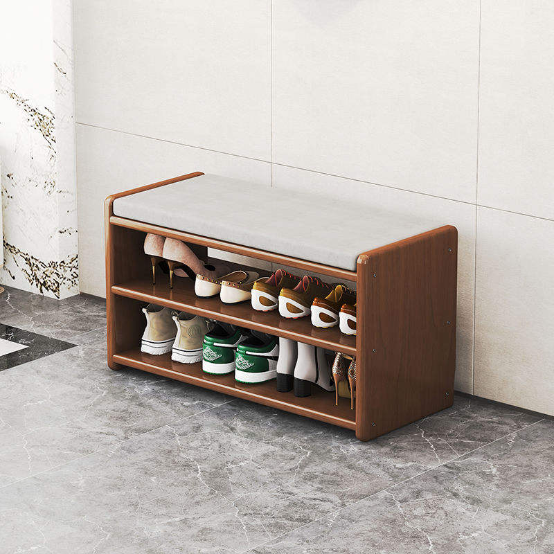 Panca Portascarpe in Legno Massello con Cuscino Morbido - Scaffale Multistrato Semplice per Ingresso di Casa, Dormitorio