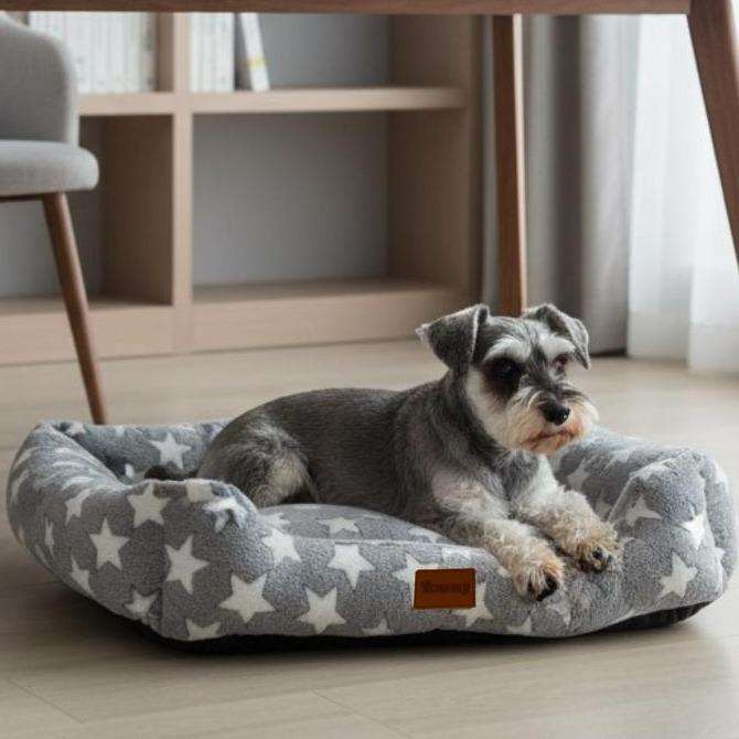 Soft Flannel Dog Bed with Stars or Bones Gray Non-Slip Base Available in 3 Sizes (S/M/L)
