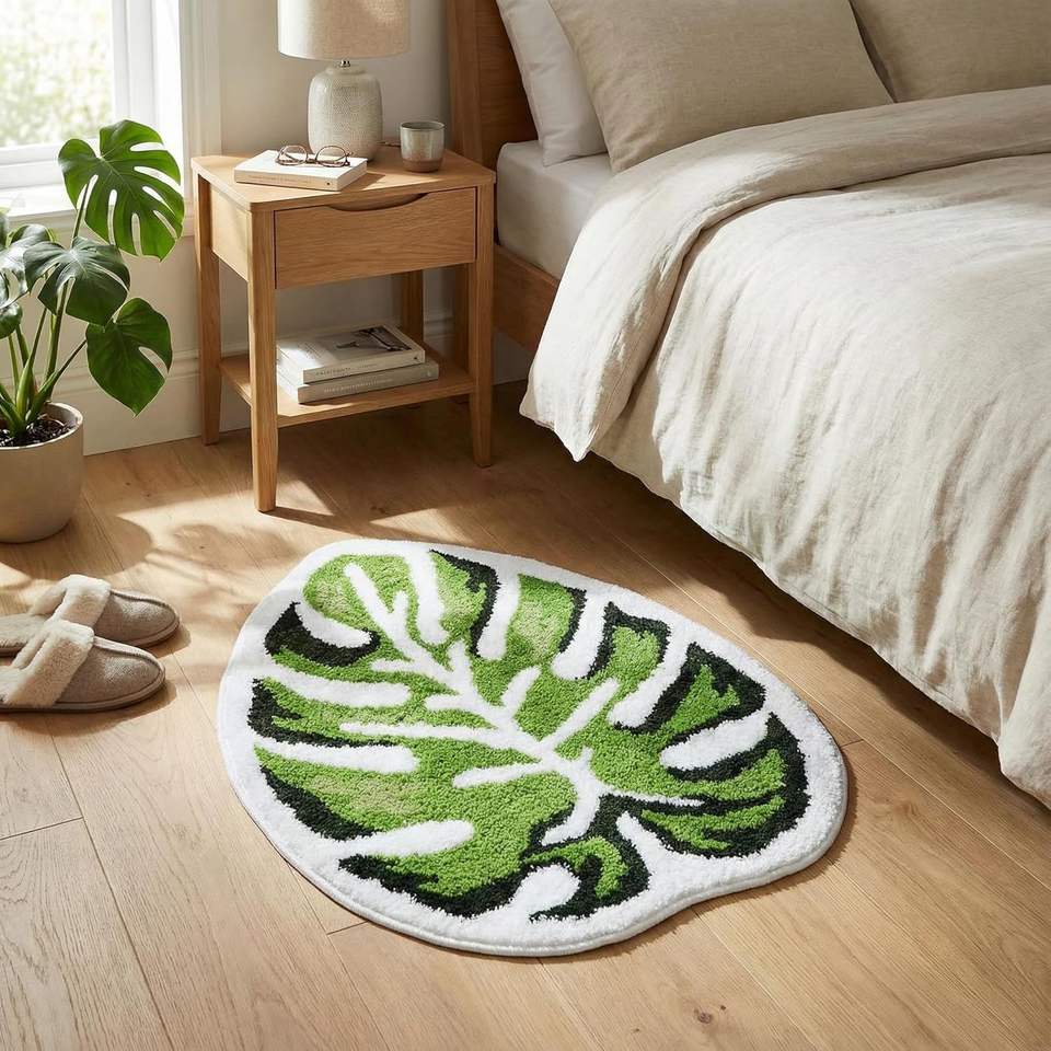 Tappetino da Bagno Morbido con Foglia di Monstera Verde, Antiscivolo, Motivo Floreale Tropicale, Lavabile in Lavatrice, Accessorio Divertente per il Bagno