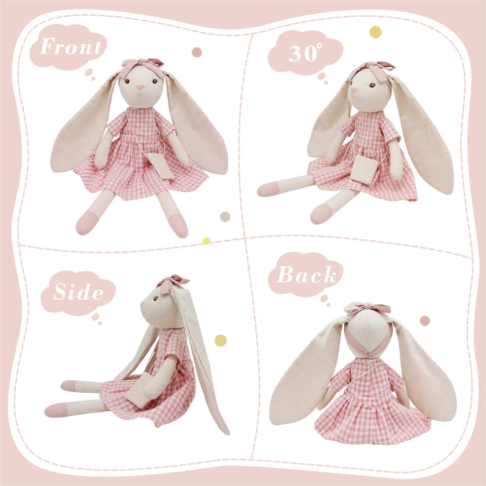 Soft Linen Long Ears Easter Bunny Doll Toy Oem Odm Plush Ballerina with Dress Rabbit Animal Kid Toys for Girl