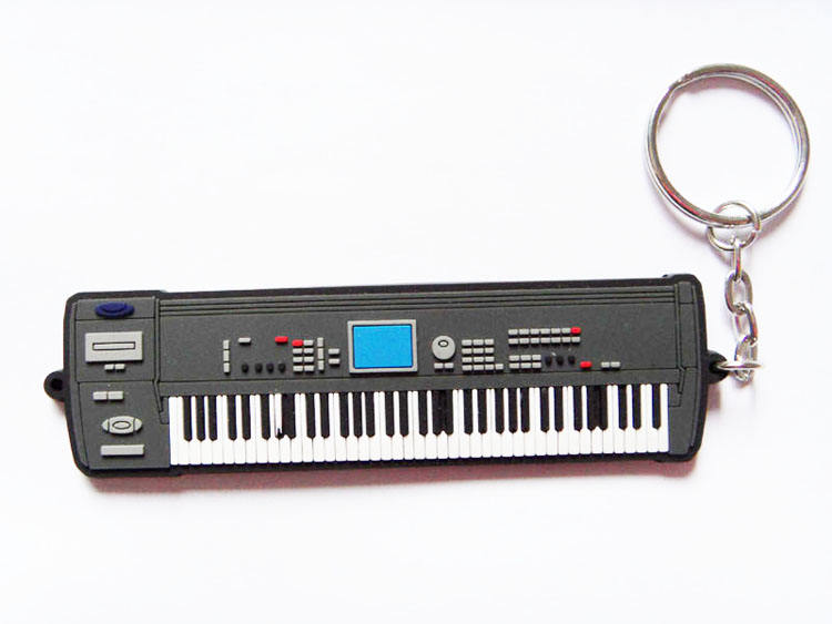 Portachiavi in PVC Morbido 2D a Forma di Strumento Musicale, Chitarra / Chitarra Elettrica / Tastiera, Portachiavi a Forma di Batteria