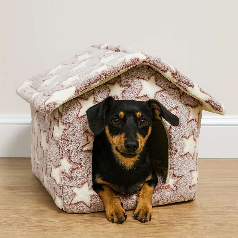 Soft Padded Pet House With Stars Design Warm Comfortable Indoor Dog Cat Bed Shelter Small Size