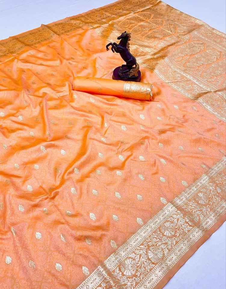 Saree in Pura Seta Banarasi Morbida, Tessuto a Mano, con Ricami Zari in Rilievo, Bordo Zari, Pallu Pesante e Ricco, Tradizionale per Feste, Asciugatura Rapida