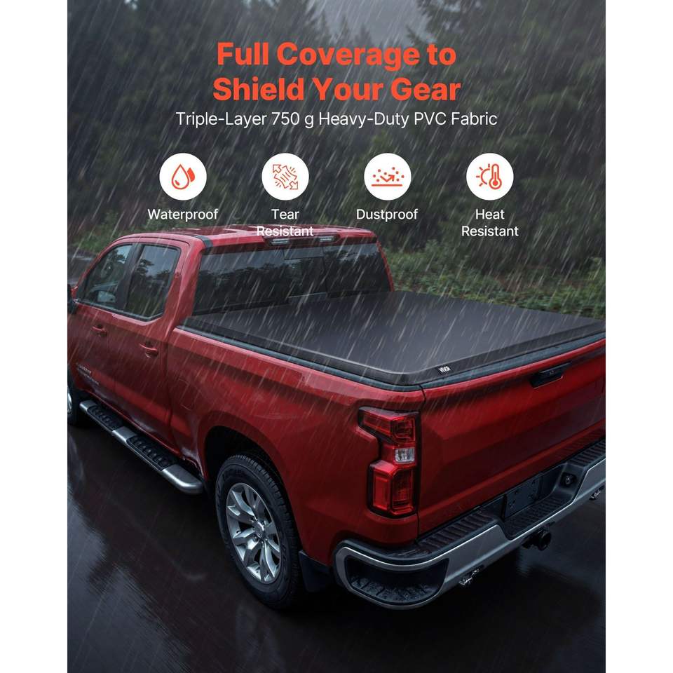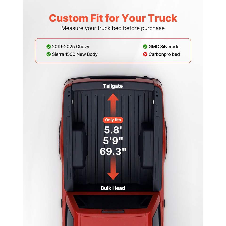 Copertura Morbida Avvolgibile per Cassone (Tonneau Cover) Compatibile con Nuova Carrozzeria Chevy Silverado/GMC Sierra 1500 (2019-2025) per Cassone da 5.8 ft (5 ft 9 in)