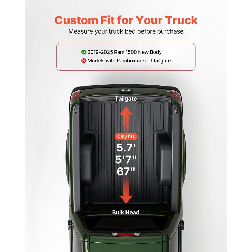 Copertura Morbida Avvolgibile per Cassone Ram 1500 2019-2025, Compatibile con Cassone da 5,7 piedi, Adatta per Cassone da 5 piedi 7 pollici/67 pollici