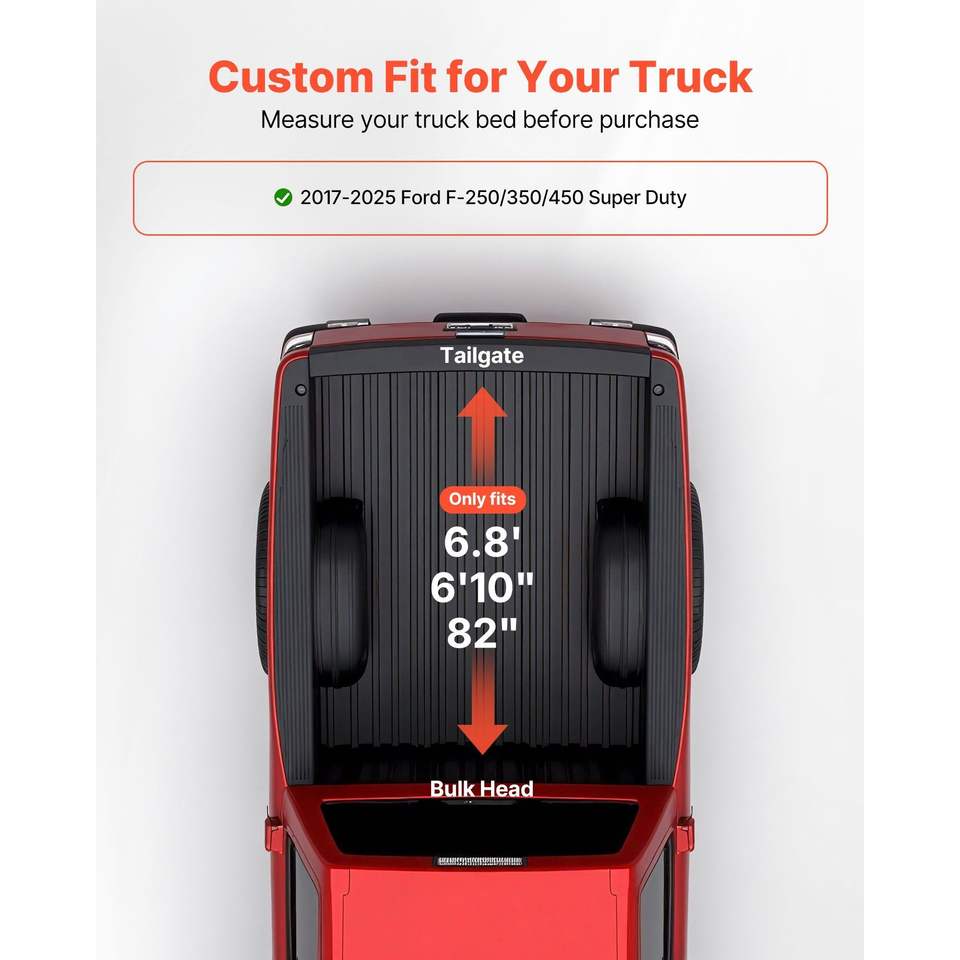 Copertura Morbida Avvolgibile per Cassone Ford F-250/350/450 Super Duty 2017-2025 Compatibile con Cassone da 6.8 ft (6 ft 10 In/82 In)