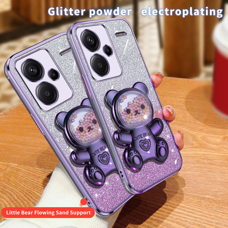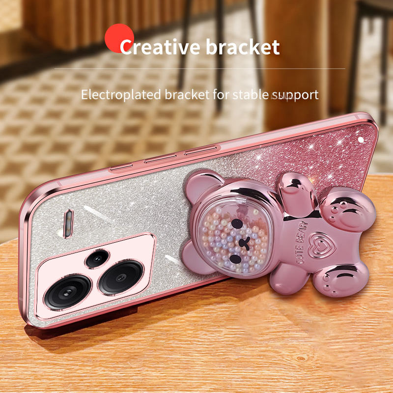 Soft TPU Electroplated Cartoon Glitter Cover with Stand Holder Phone Case for Xiaomi Redmi Note 13 Pro+ 5G Poco X6 Pro
