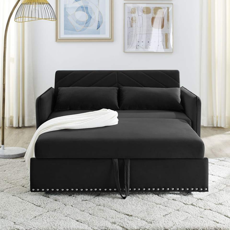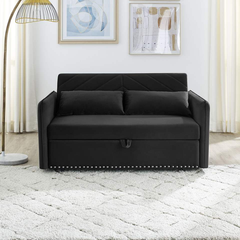 Divano Letto 3-in-1 in Morbido Velluto Regolabile con Porta USB, 2 Cuscini Lombari e Tasca Laterale, Divano Letto 2-in-1