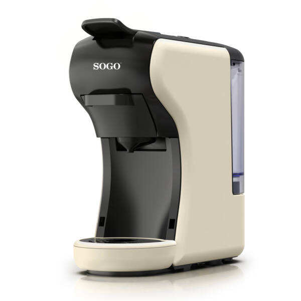 Macchina per caffè espresso a capsule Sogo 3 in 1, colore crema, design compatto per uso domestico e in ufficio
