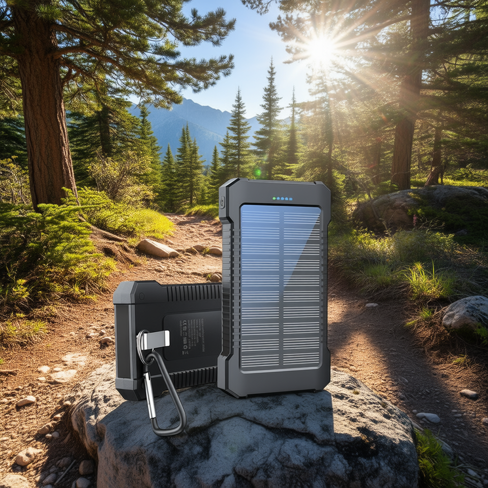 Caricatore solare Power Bank portatile da 8000 mAh con luce integrata per campeggio all'aperto, escursionismo, nero arancione