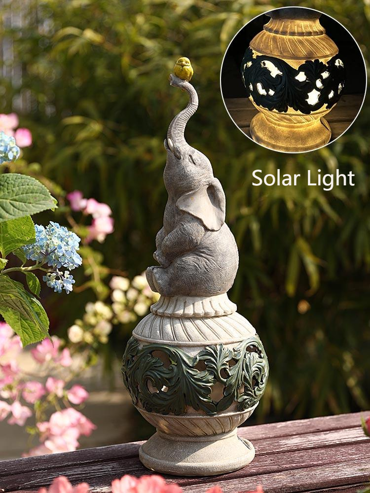 Statua Solare a Forma di Elefante su Globo con Design di Farfalle e Uccelli, Decorazione da Giardino per Esterni, Accensione/Spegnimento Automatico, Statua LED per Regalo Festivo