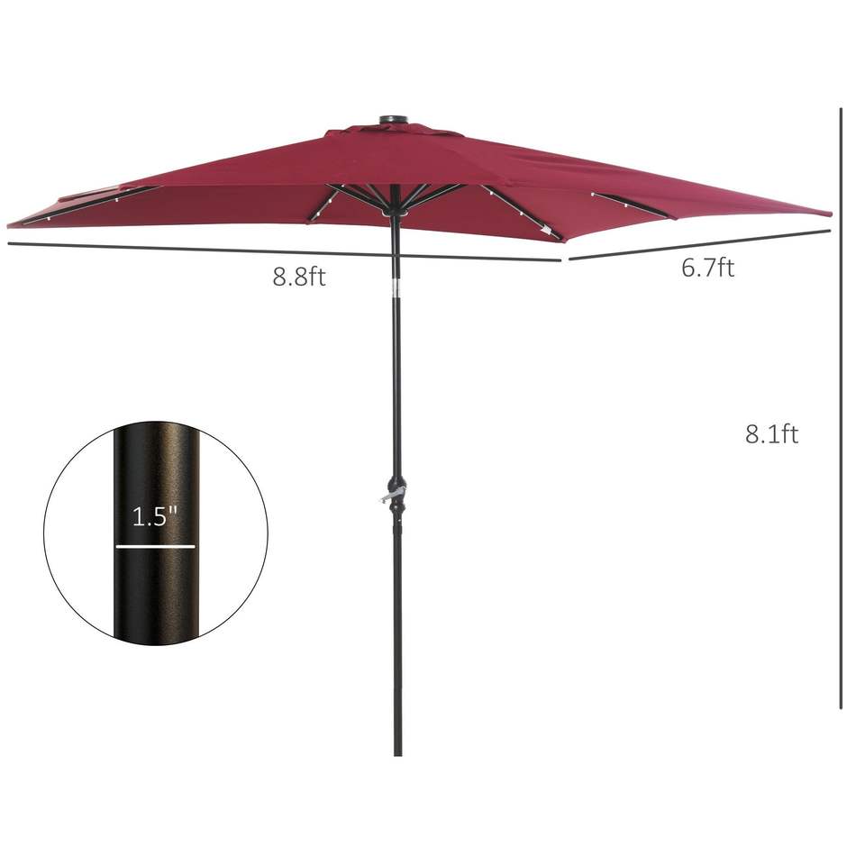 Ombrellone da Patio con Illuminazione LED Solare 9' X 7' Rosso Vino, Inclinabile con Manovella, Base per Tavolo da Esterno, Giardino, Terrazza, Piscina, Spiaggia