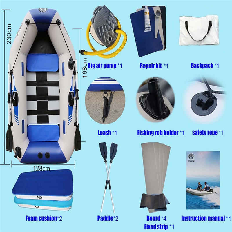 Solar Marine 230 CM 3 People PVC Inflatable Kayak Canoe Fishing Boat Water Sports Wooden Bottom