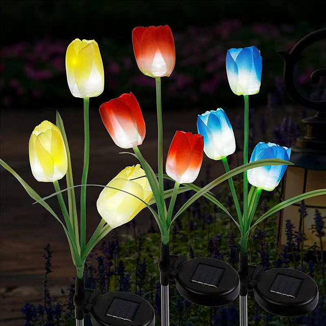 Luci solari da giardino all'aperto impermeabili tulipani colorati fiori luci di decorazione fiori simulati luci per giardino Patio