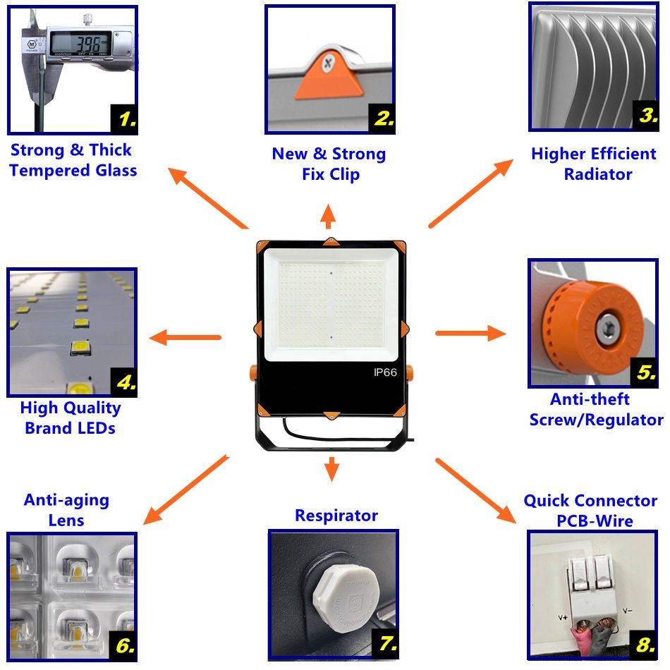 Faro a Energia Solare IP66 da 10W/50W/60W/100W/150W/200W/300W/600W/800W/1000W Illuminazione LED per Esterni