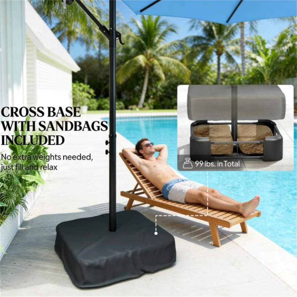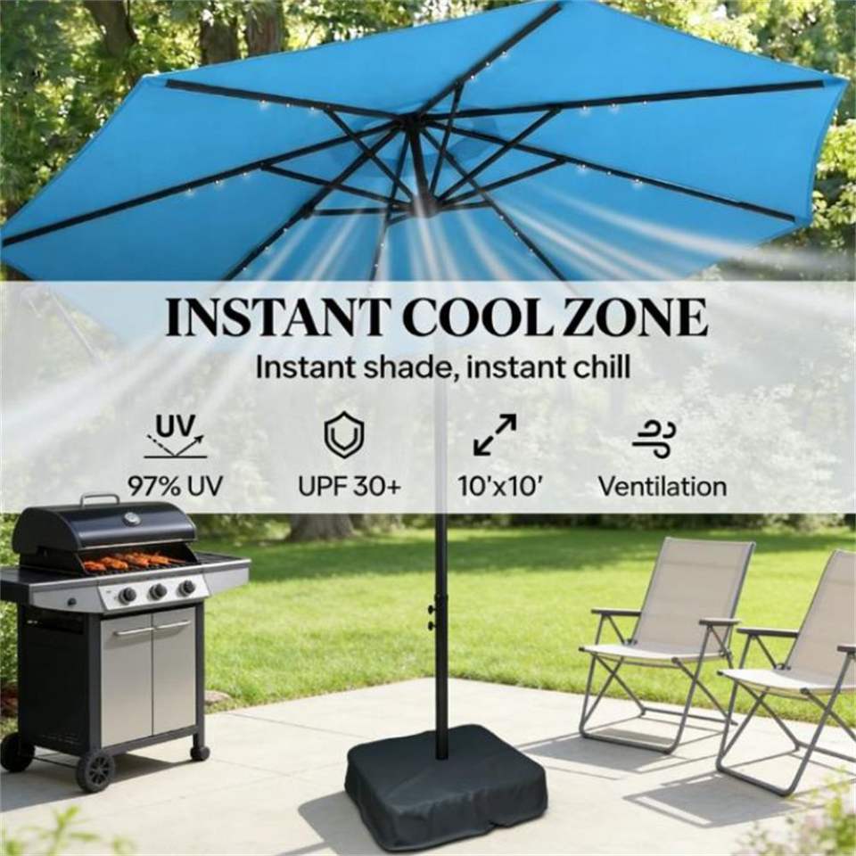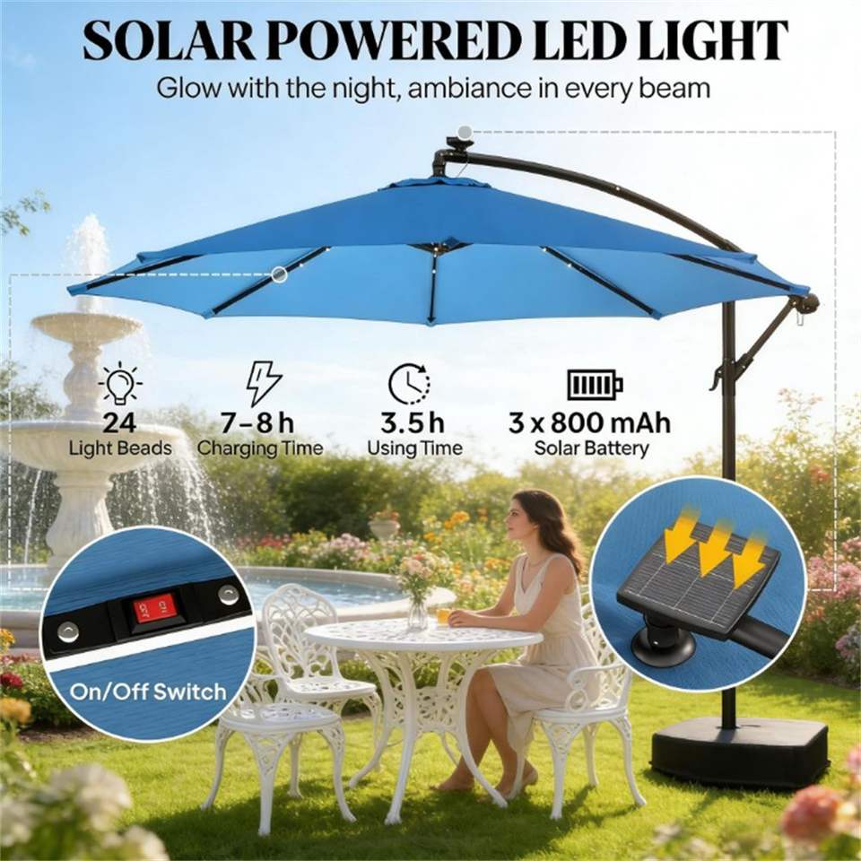 Solar Terrace Umbrella for Outdoor and Courtyard Use Lake Blue with Base
