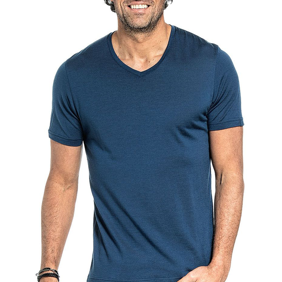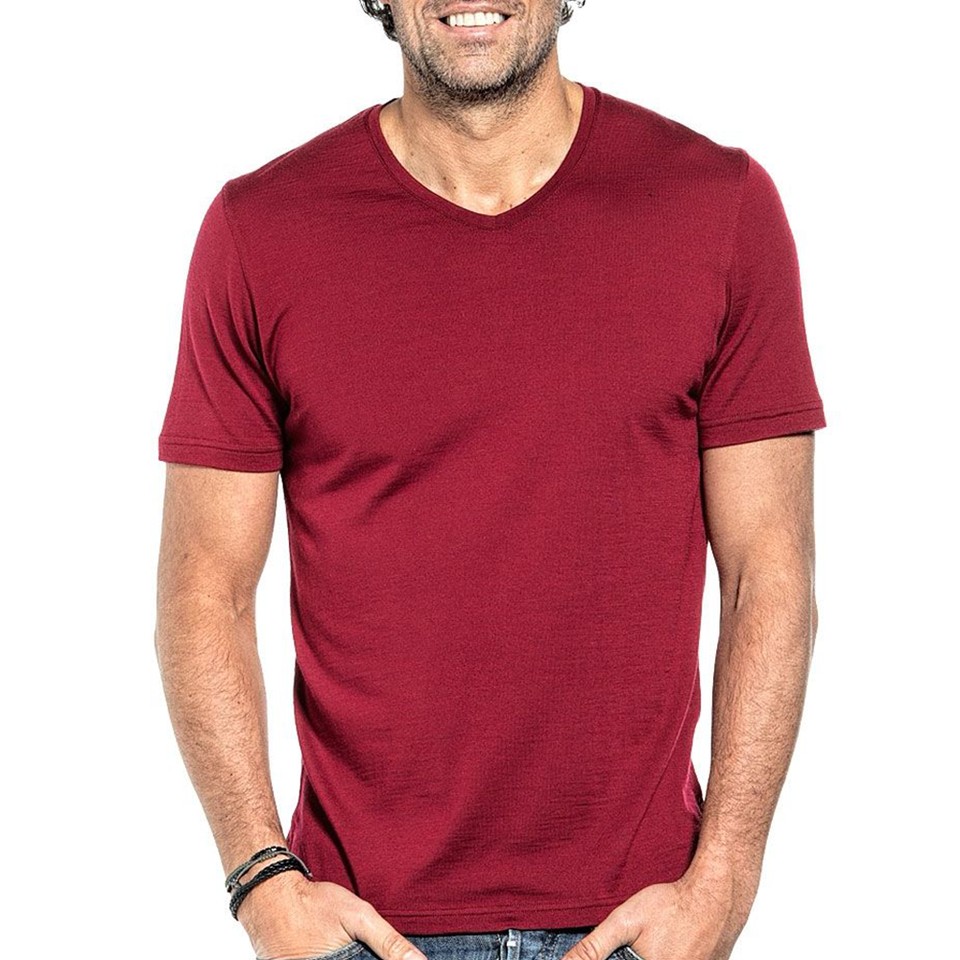 T-Shirt Estiva da Uomo in Lana Merino con Scollo a V di Alta Qualità Personalizzata dalla Fabbrica Solarwool