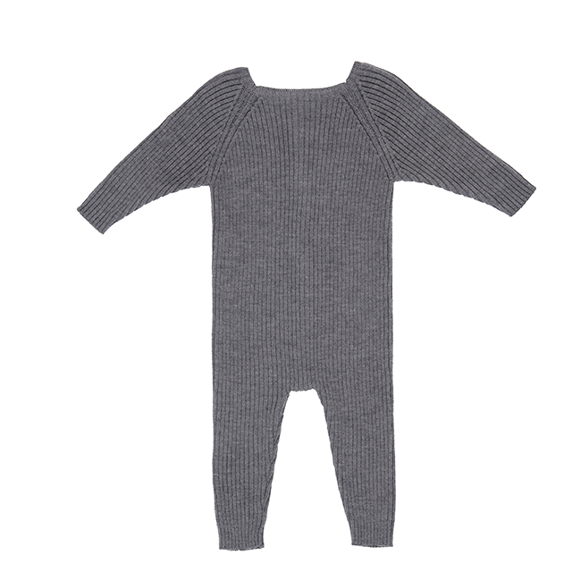Solarwool Support Samples High Quality Gray Merino Wool Knitted Baby Clamping Jumpsuit