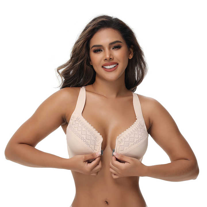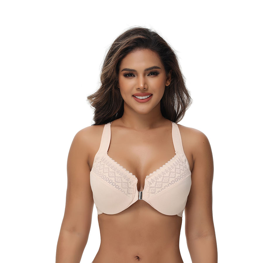 Reggiseno Wireless Solf a Copertura Totale, Reggiseno Grande con Apertura Frontale, Design Sexy in Pizzo con Ferretto e Schiena a X, Modellante Plus Size, Vendita Diretta dal Produttore